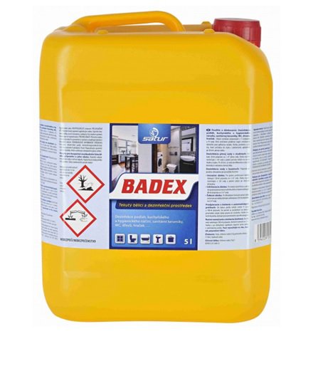 Dezinfekce Badex je vhodná pro dezinfekci podlah, kuchyňského a hygienického náčiní, sanitární keramiky, WC, dřezů, hraček.