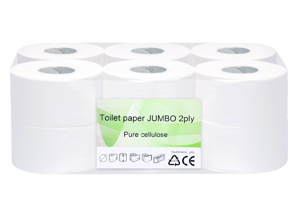 HYG-0101002 | Toaletní papír Jumbo 190, 2vrstvy, celulóza, 100m | 36,63 Kč | 44,32 Kč | 12 role |
