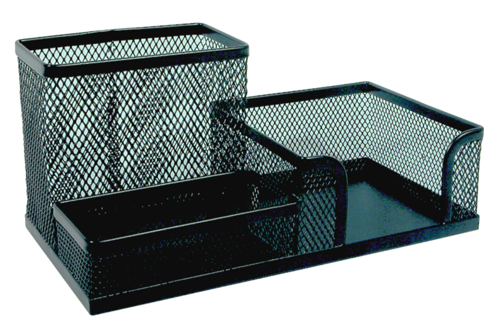 Drátěný stojánek se třemi přihrádkami. Barva: černá.