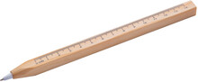 Dřevěné kuličkové pero se čtvercovým tubusem a 14 cm pravítkem na jedné straně. S černou náplní.