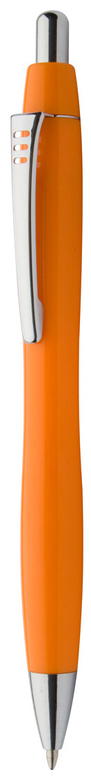 Plastové kuličkové pero s pevným, barevným tělem, kovovým klipem s třpytivým chromovým vzhledem. Dodává se s modrou náplní.