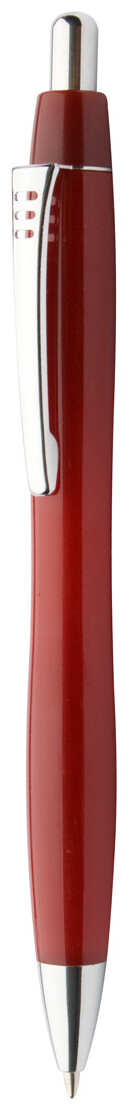 Plastové kuličkové pero s pevným, barevným tělem, kovovým klipem s třpytivým chromovým vzhledem. Dodává se s modrou náplní.
