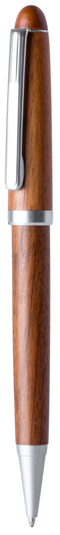 Dřevěné kuličkové pero s modrou náplní.