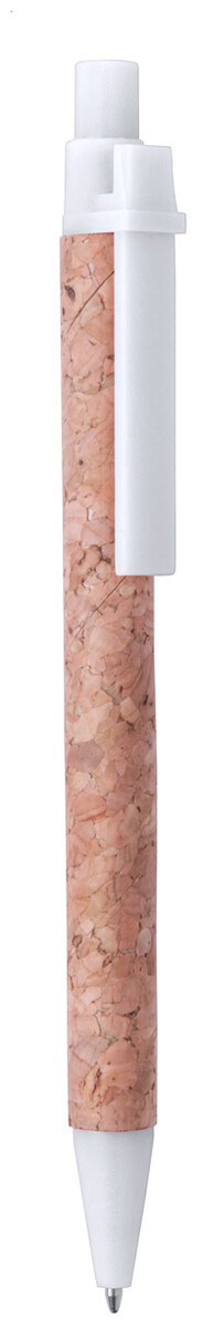Kuličkové pero z recyklovaného papíru potažené korkem s plastovými částmi a modrou náplní.