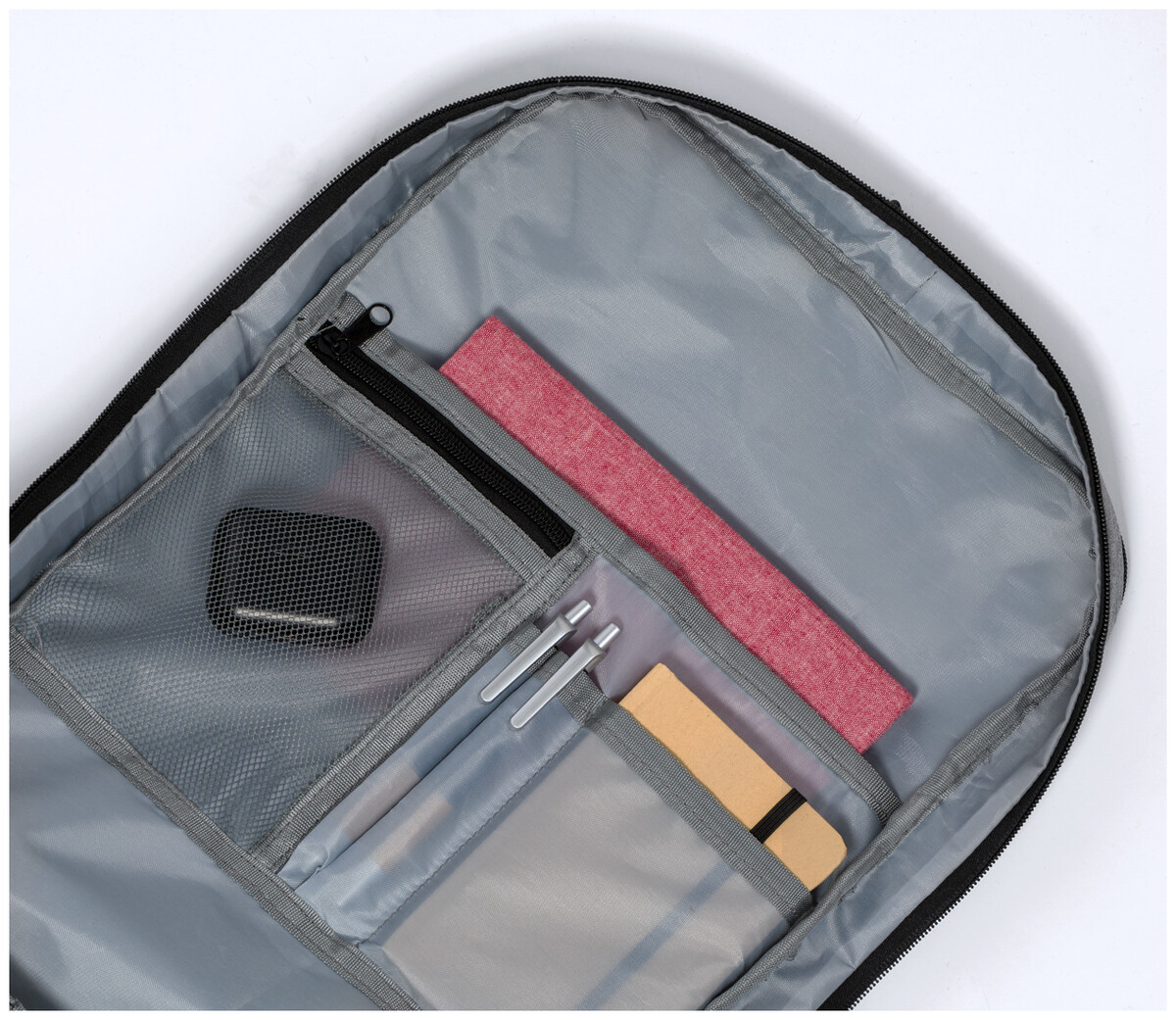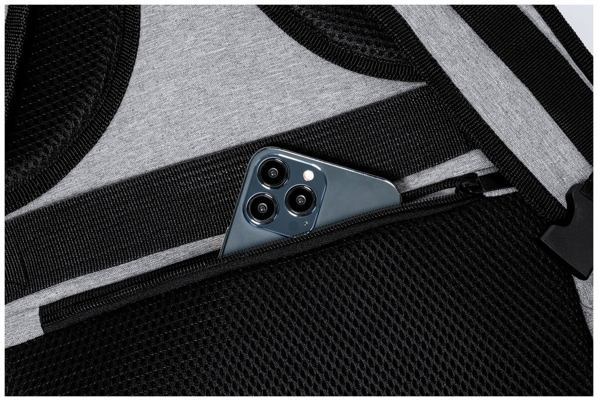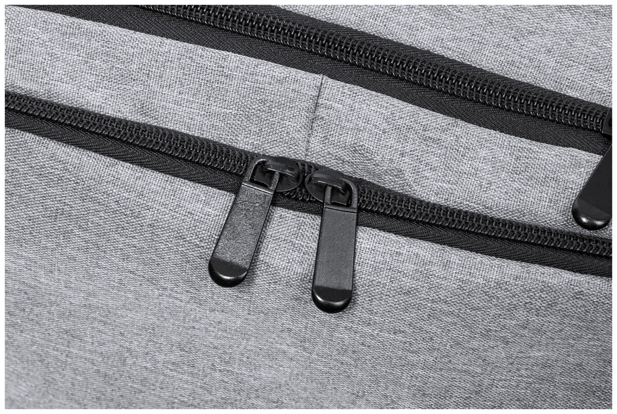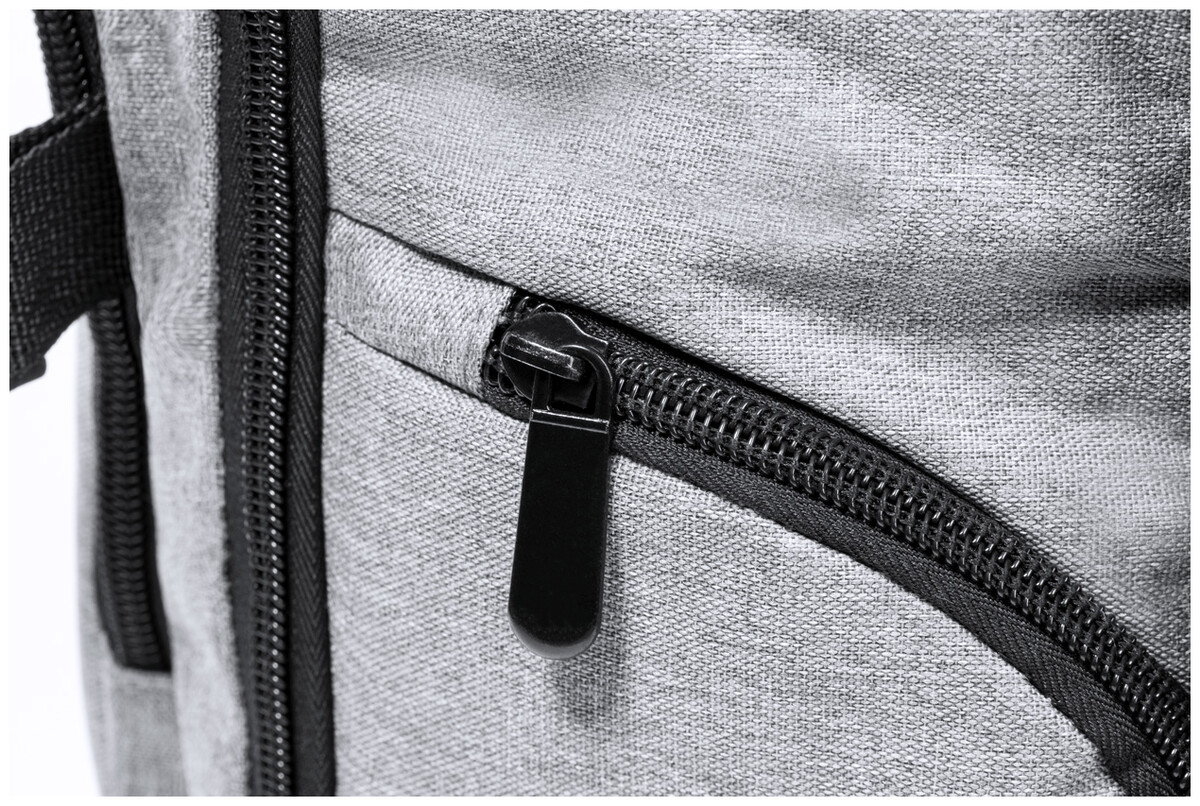 Voděodolný RPET batoh se 3 hlavními přihrádkami na zip, 2 předními kapsami na zip, boční kapsou na zip a skrytou kapsou proti krádeži. S polstrovanými přihrádkami na notebook (17") a botami, polstrovanými zády a ramenními popruhy. S popruhem na vozík a vestavěným USB připojením pro powerbanky. Polyester 300D RPET s výrazným štítkem RPET.
