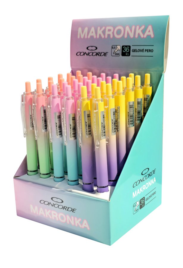 | 301.001 | Gelové pero CONCORDE Makronka, asort barev | 18,40 Kč | 22,26 Kč | 1 ks | |||