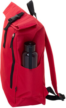 Rolovací batoh RPET se zapínáním na přezku, přihrádkou na notebook (14") a přední kapsou na zip. S polstrovanými zády a ramenními popruhy. Polyester 600D RPET s výrazným štítkem RPET.