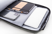 Vodotěsný batoh RPET se 2 přihrádkami na zip, 2 předními kapsami na zip, bočními kapsami a polstrovanou přihrádkou na notebook (16"). S popruhem na vozík, polstrovanými zády a ramenními popruhy. Polyester 600D RPET potažený PU, s výrazným štítkem RPET.