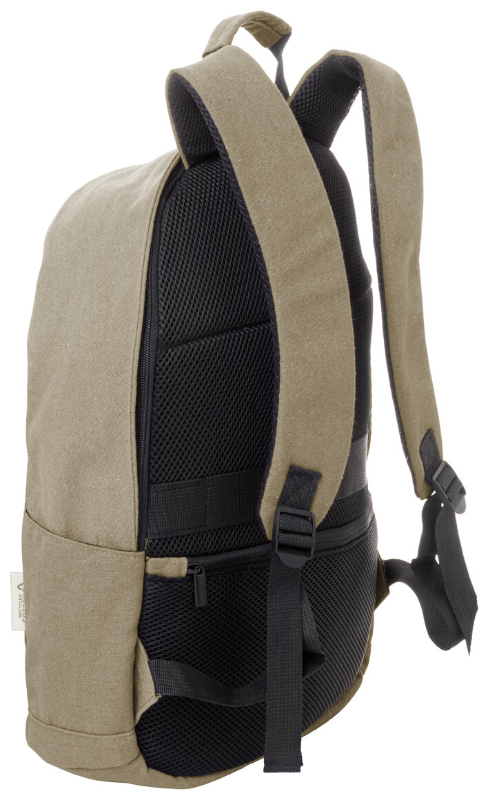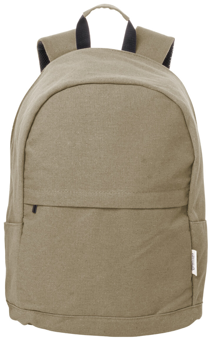 Batoh z recyklovaného plátna s hlavním oddílem na zip, polstrovanou přihrádkou na notebook (15"), přední kapsou na zip, bočními kapsami, popruhem na vozík, polstrovanými zády a ramenními popruhy. Se skrytou kapsou proti krádeži. 70% recyklované bavlny a 30% RPET polyesteru. S výrazným štítkem z recyklované bavlny.