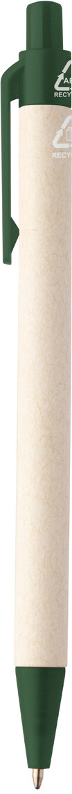 Kuličkové pero z recyklovaného kartonu na mléko s díly z recyklovaného ABS plastu. S modrou náplní.