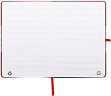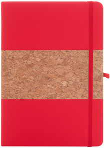 Blok A5 potažený přírodním korkem a recyklovanou PU kůží se záložkou v odpovídající barvě, gumičkou a držákem na pero. S 80 linkovanými listy z recyklovaného papíru.