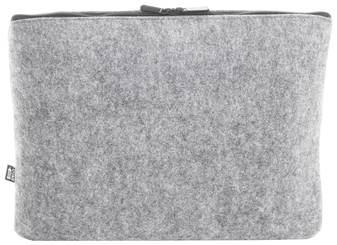 Taška na notebook z RPET plsti s přihrádkou na zip a přední kapsou. Vhodné pro notebooky do 15". S výrazným štítkem RPET.