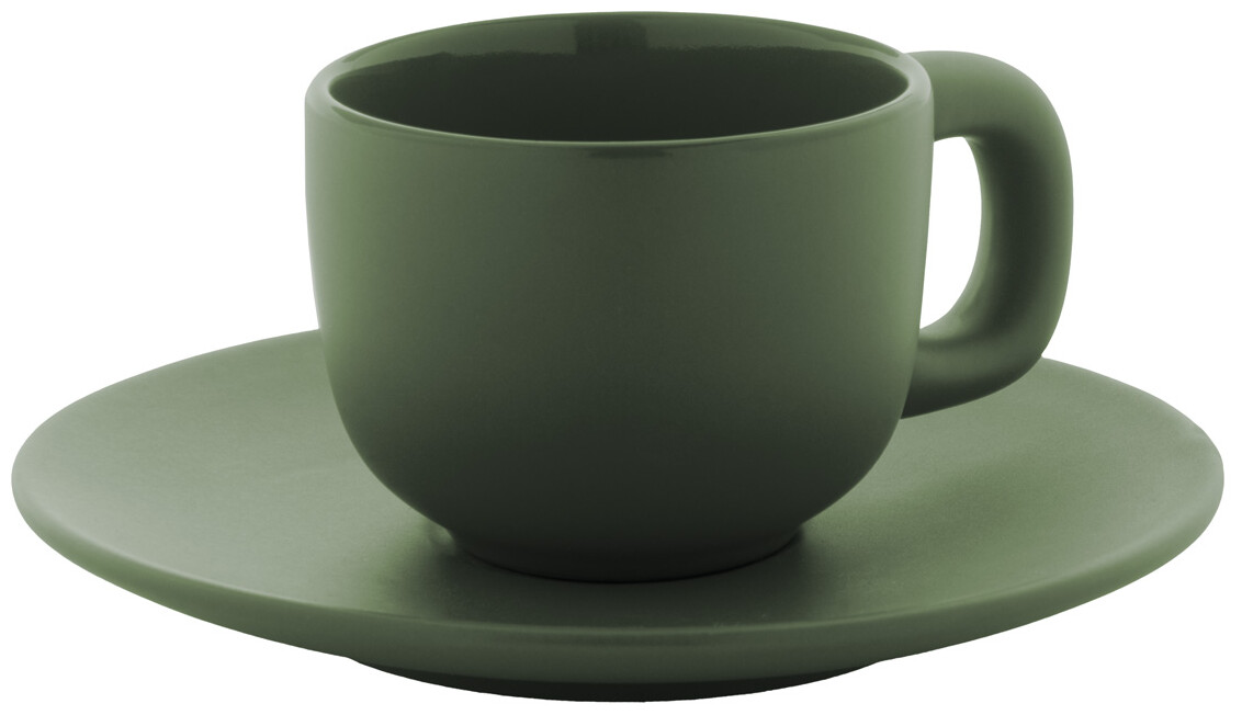 Vysoce kvalitní sada keramických šálků na espresso se 2 šálky a podšálky. S matnou vnější a lesklou vnitřní povrchovou úpravou. 85 ml. V kraftové papírové krabici.