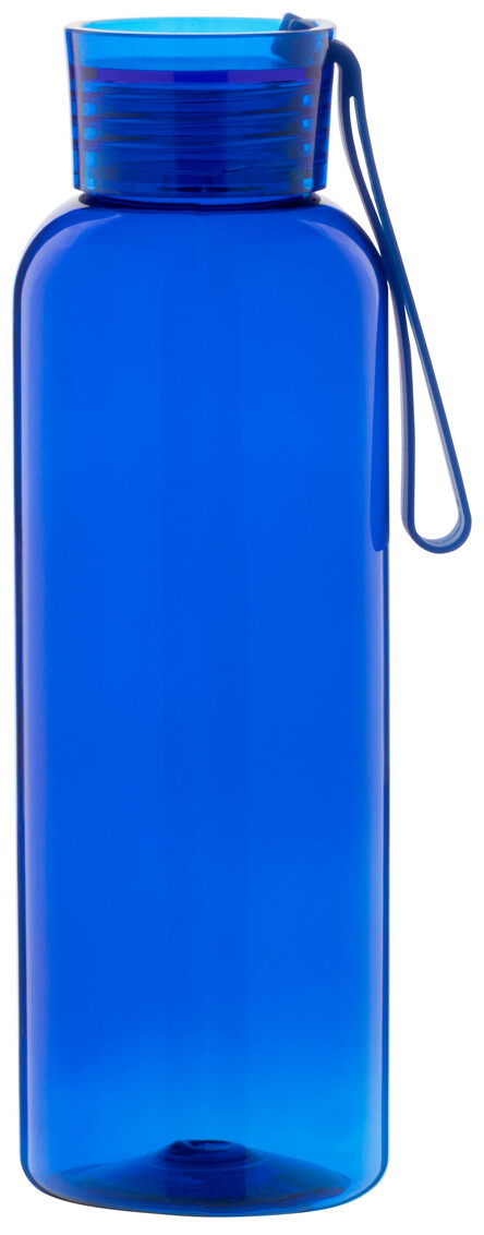 Láhev RPET s víčkem v odpovídající barvě a silikonovým popruhem, 500 ml. Nevhodné pro sycené nápoje.