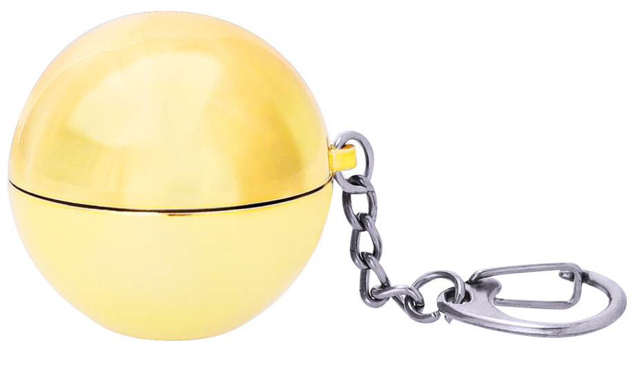 Kulatý vanilkový balzám na rty v kovovém držáku s kovovým kroužkem na klíče. S ochranou SPF15.