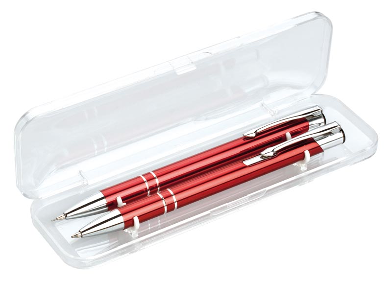 Sada ORIN v bordové barvě je elegantní psací set vyrobený z kvalitního hliníku. Tužky jsou zdobeny dvěma stříbrnými proužky a doplňky, které dodávají moderní a stylový vzhled. Prakticky baleno v papírové krabičce, vhodné také jako dárek.