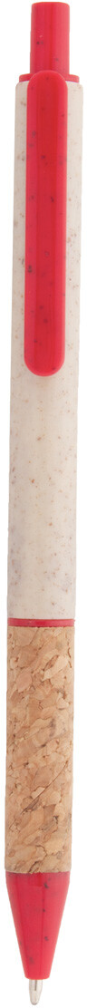Ekologické plastové kuličkové pero z pšeničné slámy s přírodním korkem a barevnými částmi. S modrou náplní.
