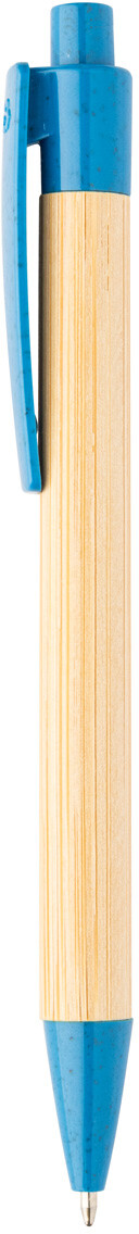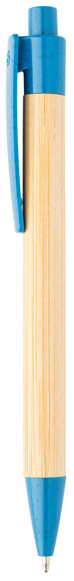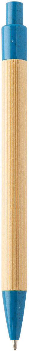 Kuličkové pero z bambusu s klipem a špičkou ze slámy, s modrou náplní.