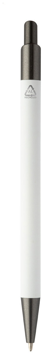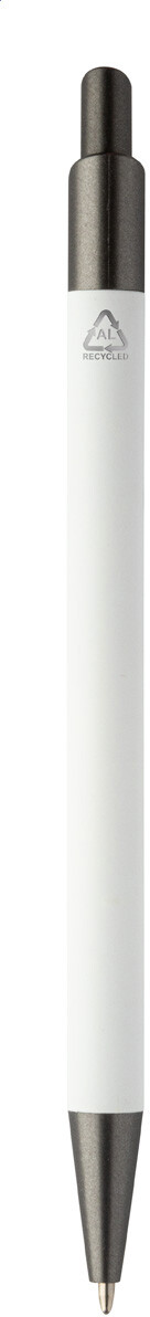 Kuličkové pero z recyklovaného hliníku s pogumovaným tělem a kovovými částmi. S modrou náplní.