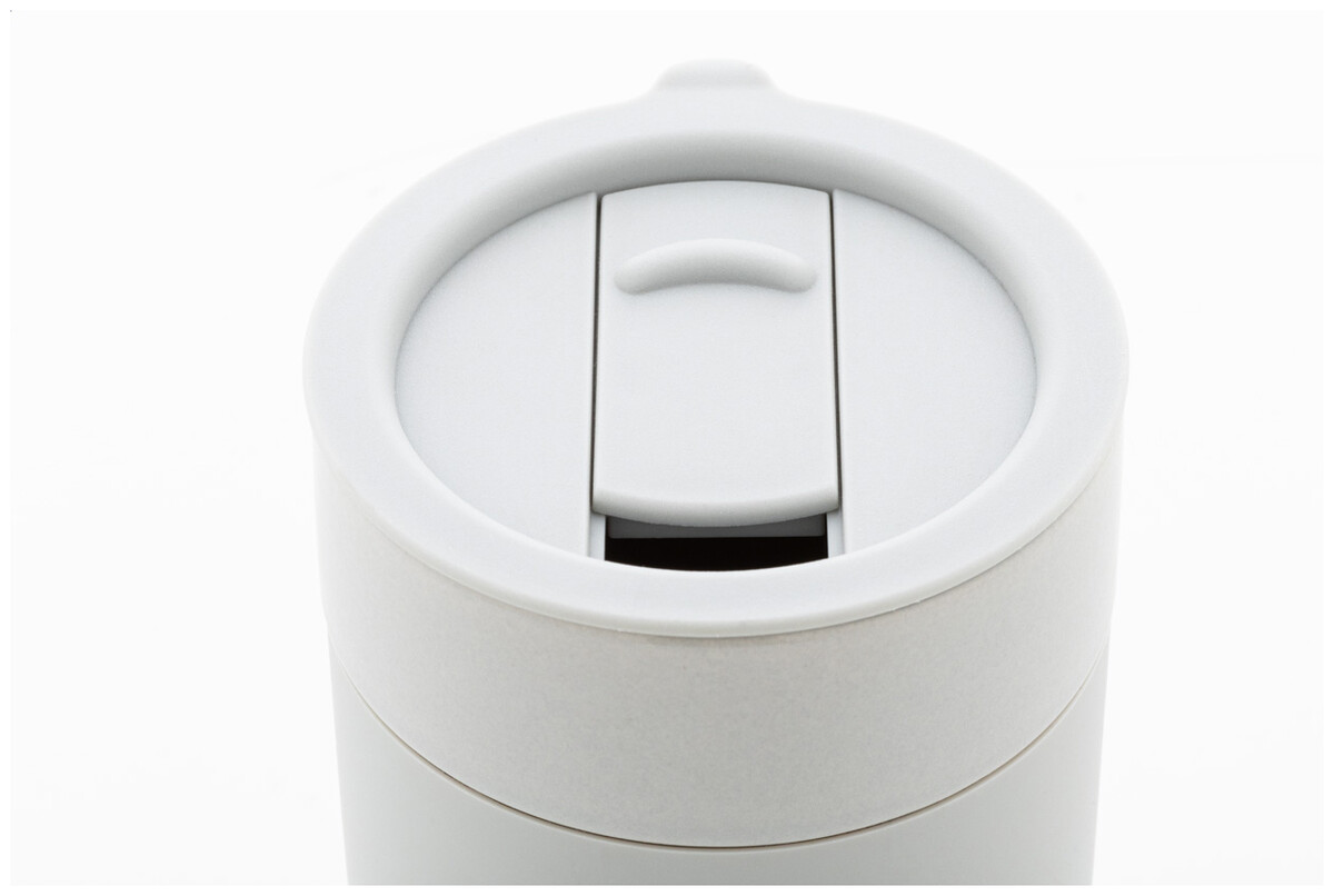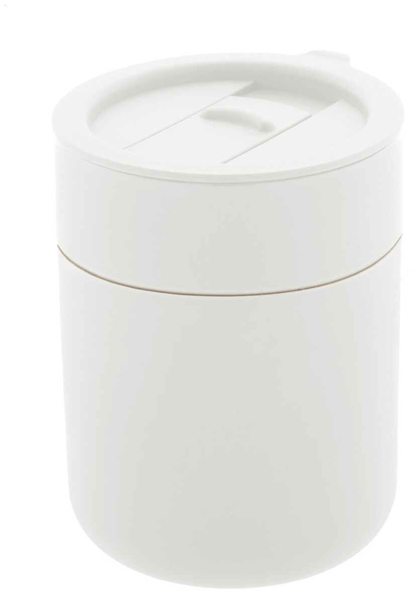 Silikonem potažený keramický cestovní kelímek s PP plastovým odkapávacím víčkem. 300 ml.
