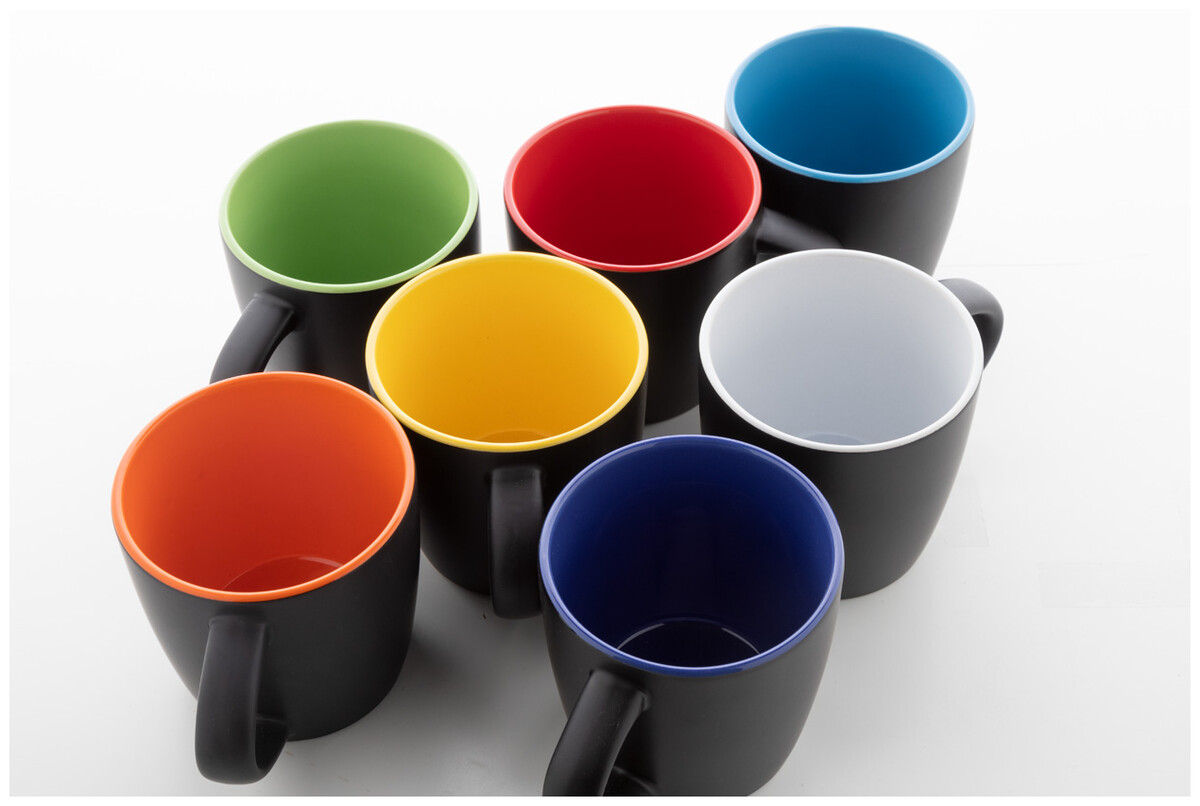 Vysoce kvalitní keramický hrnek s matnou černou vnější a lesklou vnitřní povrchovou úpravou, 300 ml. V kraftové papírové krabičce.