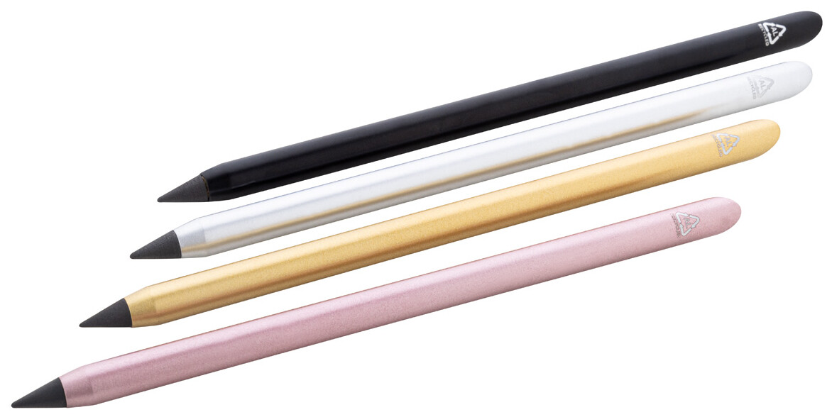 Bez inkoustové pero z recyklovaného hliníku s hrotem z kovové slitiny, který oxiduje papír. Toto pero píše podobně jako tužka a navíc je stíratelné.