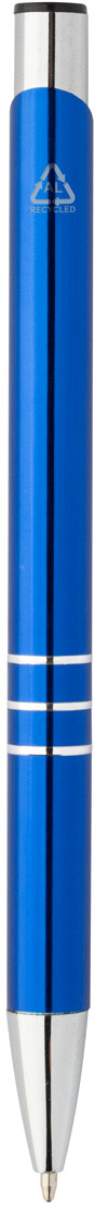 Kuličkové pero z recyklovaného hliníku s metalickým povrchem a modrou náplní.