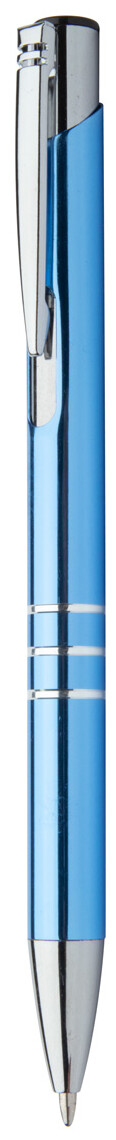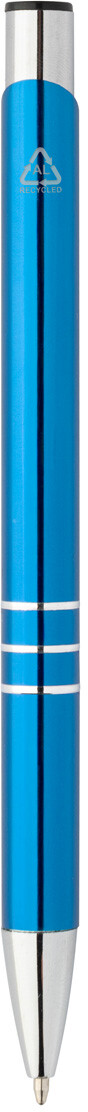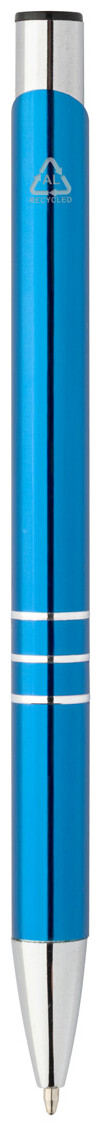 Kuličkové pero z recyklovaného hliníku s metalickým povrchem a modrou náplní.