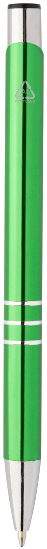 Kuličkové pero z recyklovaného hliníku s metalickým povrchem a modrou náplní.