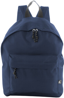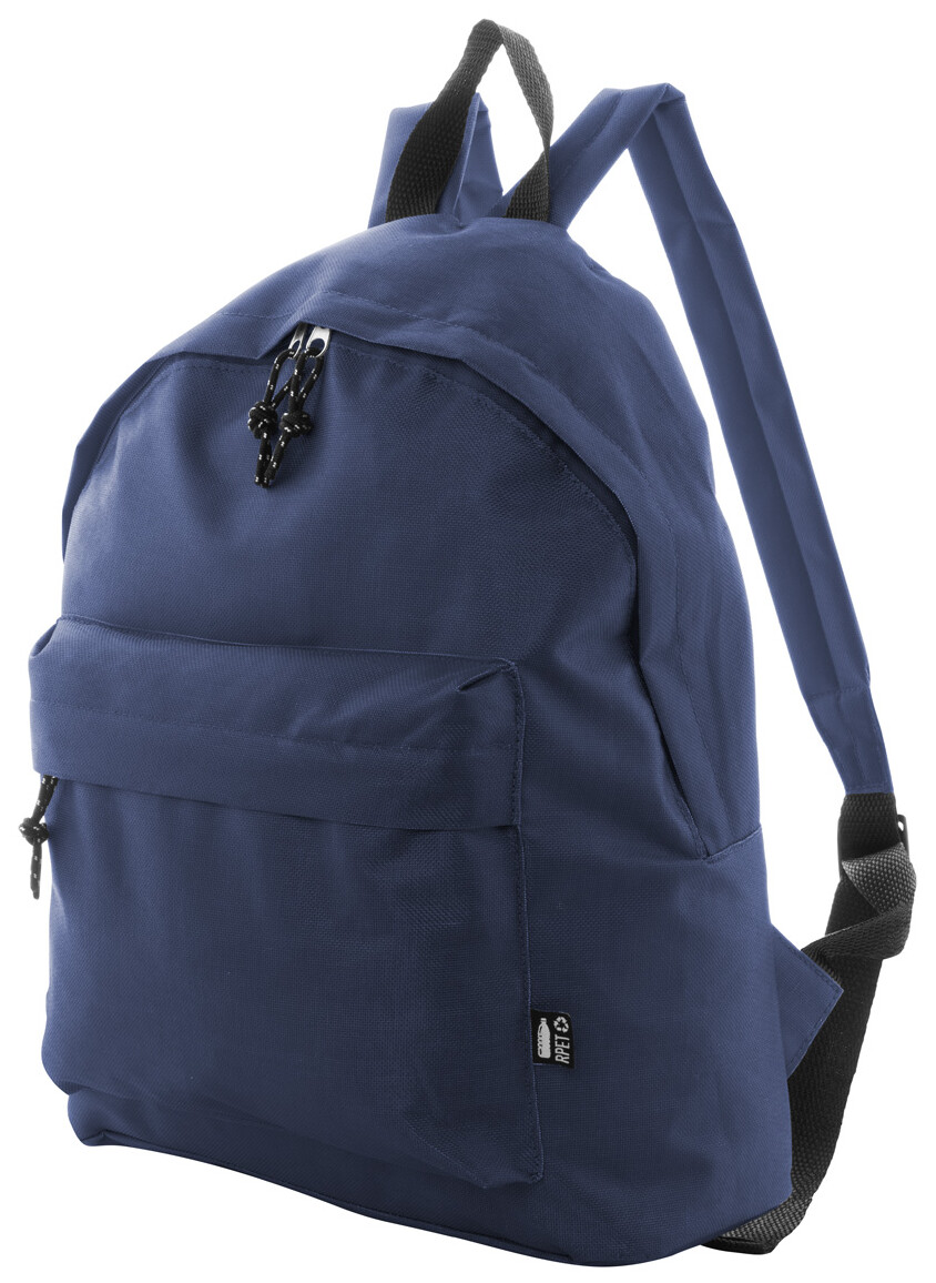 RPET batoh s hlavním prostorem na zip, přední kapsou na zip, polstrovanými zády a ramenními popruhy. Polyester 600D RPET, s výrazným štítkem RPET.