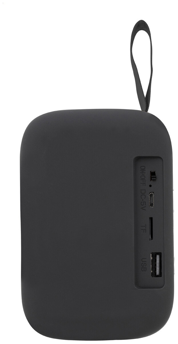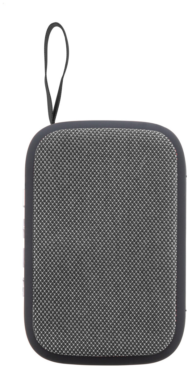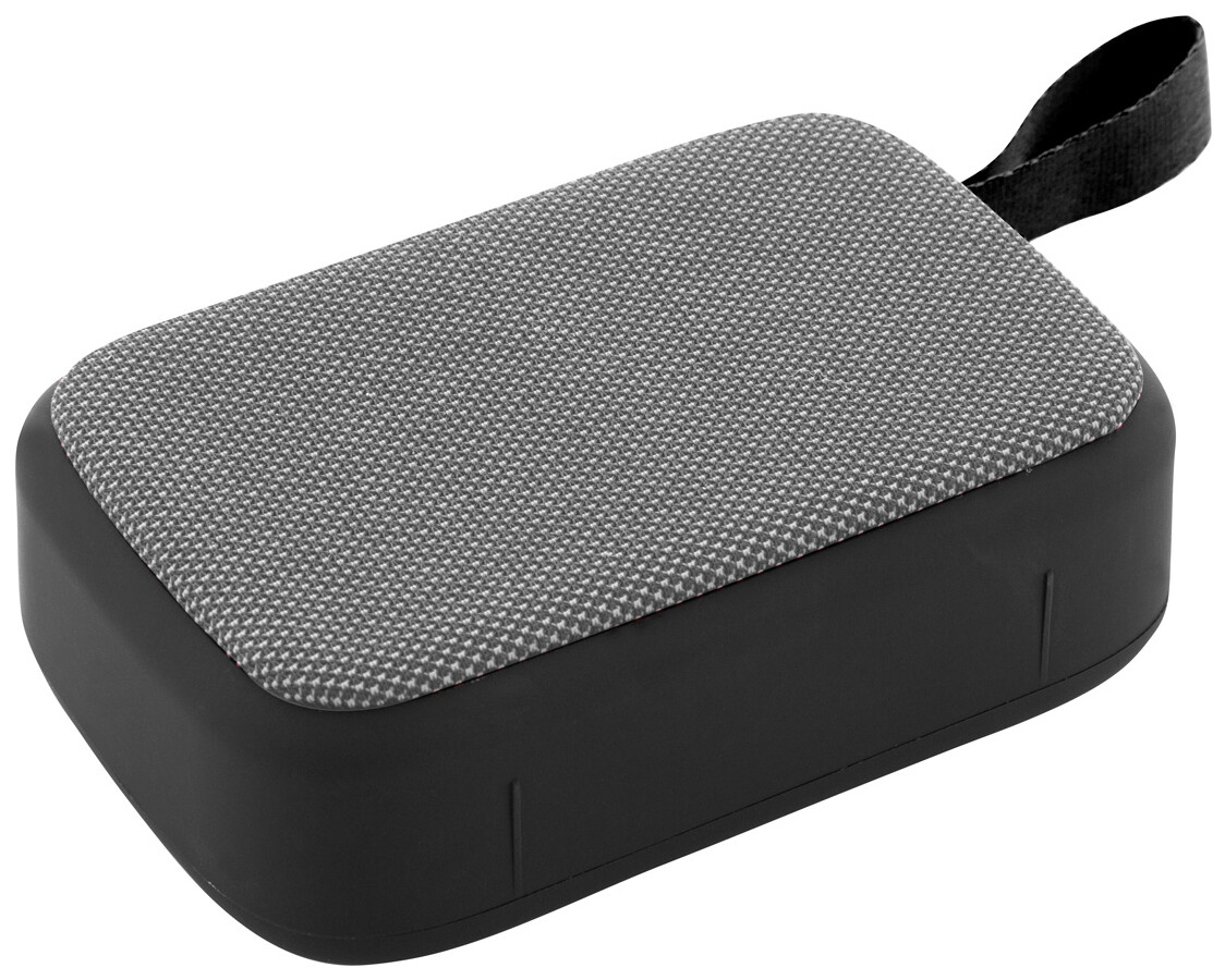 Bezdrátový reproduktor v plastovém krytu s polyesterovou tkaninou a vestavěnou dobíjecí baterií (250 mAh). Včetně nabíjecího kabelu USB.