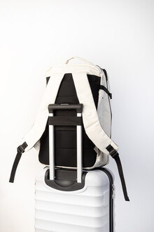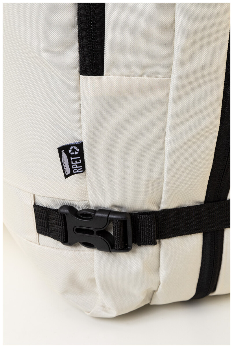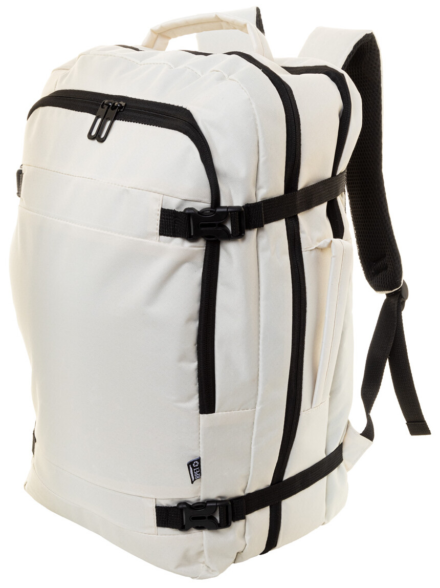 Dvojfunkční RPET batoh a taška na dokumenty se 2 přihrádkami na zip, přední kapsou na zip a polstrovanou přihrádkou na notebook (15"). S kapsou proti krádeži, popruhem na vozík, polstrovanými zády a ramenními popruhy. Polyester 600D RPET, s výrazným štítkem RPET.