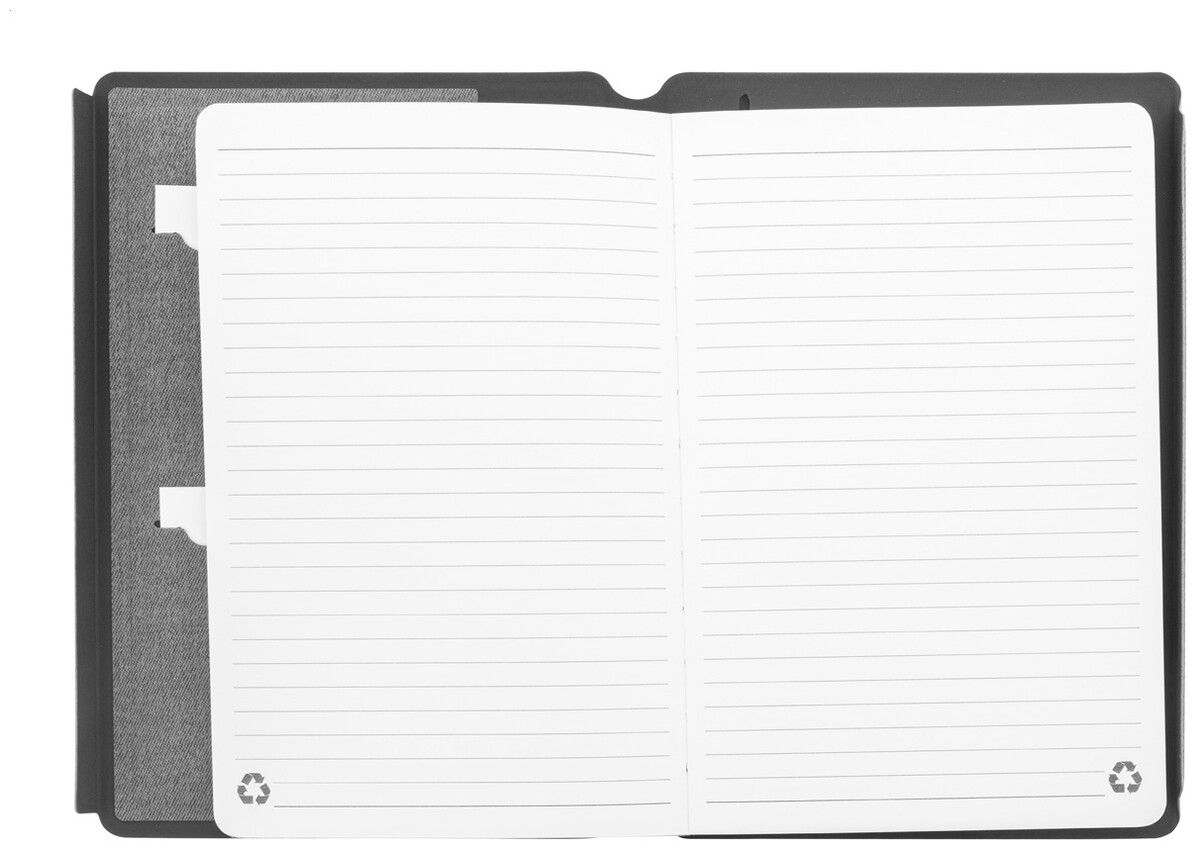 Sloha A5 na dokumenty z recyklované PU kůže s vnitřními kapsami na organizér a magnetickým zavíráním. Se 64 linkovanými listy poznámkového bloku z recyklovaného papíru.