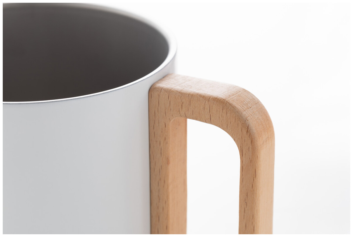 Dvoustěnný termo hrnek z recyklované nerezové oceli s dřevěným uchem. 350 ml.