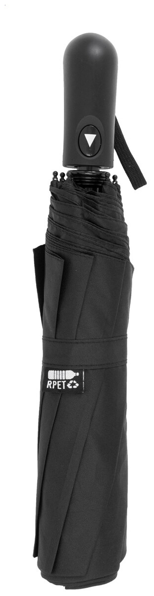 Velký automatický skládací deštník odolný proti větru s 8 panely v pouzdru odpovídající barvy. S kovovým rámem, sklolaminátovými žebry a ABS rukojetí s poutkem na ruku. Pongee 190T RPET. S výrazným štítkem RPET.