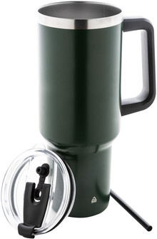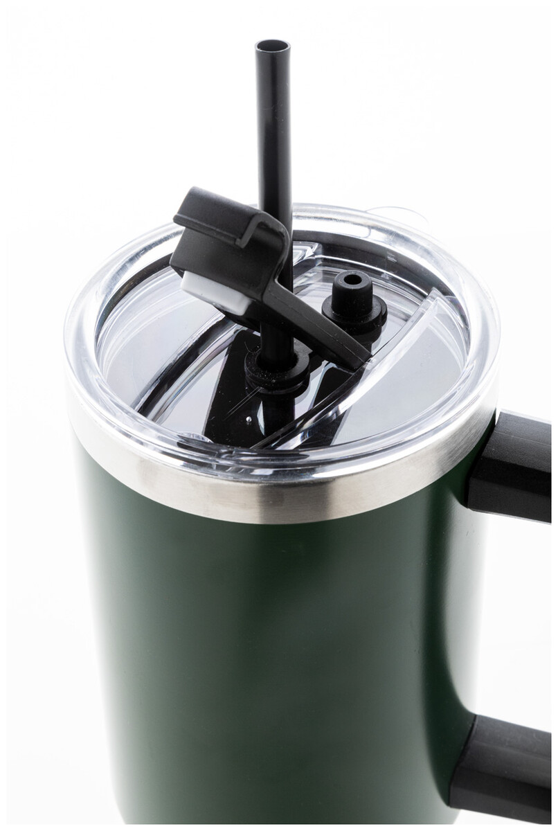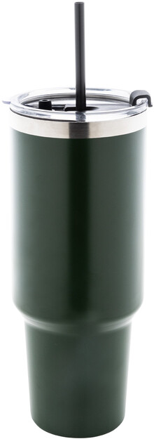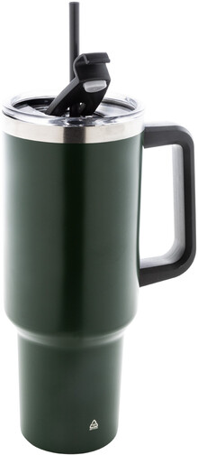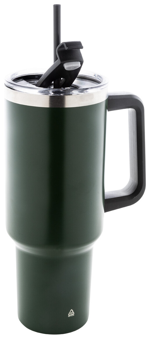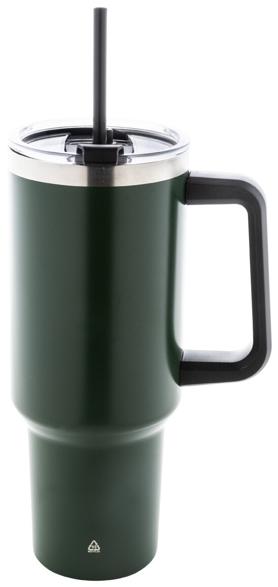 Dvouplášťový vakuově izolovaný termo hrnek z recyklované nerezové oceli s PS víčkem na pití a PP brčkem. 1200 ml.