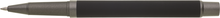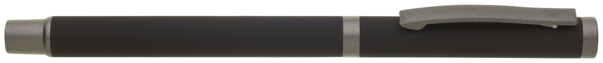Elegantní kovový roller RIFLO SOFT v černé barvě s tmavě šedými doplňky a pogumovaným povrchem. Náplň v rolleru píše modře.