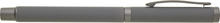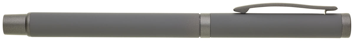 Elegantní kovový roller RIFLO SOFT v šedé barvě s tmavě šedými doplňky a pogumovaným povrchem. Náplň v rolleru píše modře.
