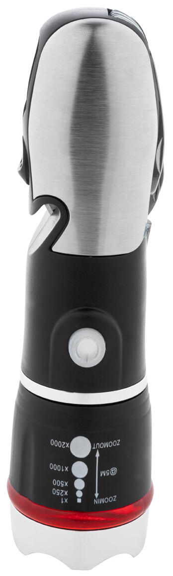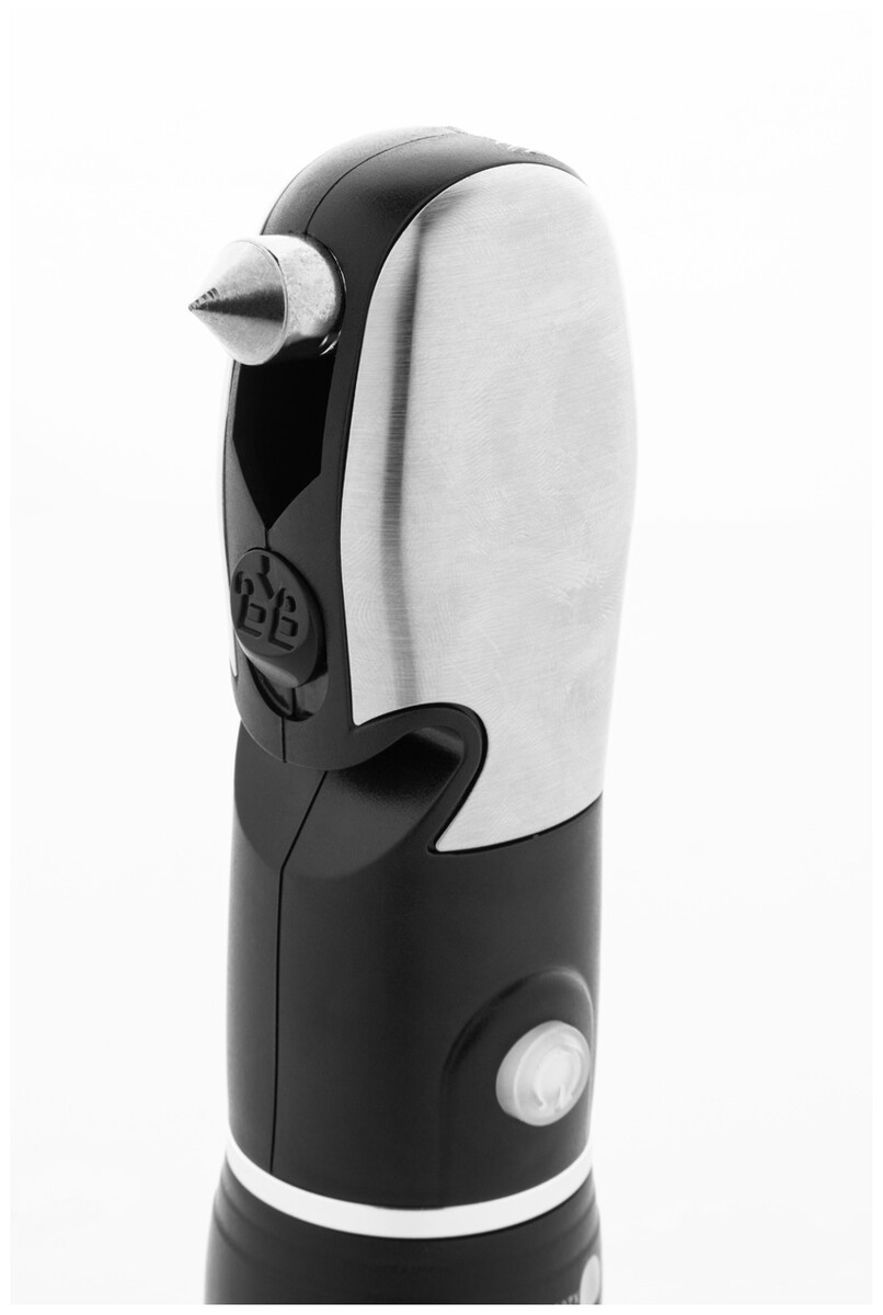 ABS a nerezová multifunkční baterka s nouzovým kladívkem, řezačkou bezpečnostních pásů a multifunkčním nářadím s 9 funkcemi. Se zoomovatelným LED světlem a 3 světelnými režimy. Funguje na 3 baterie AAA, bez baterií.