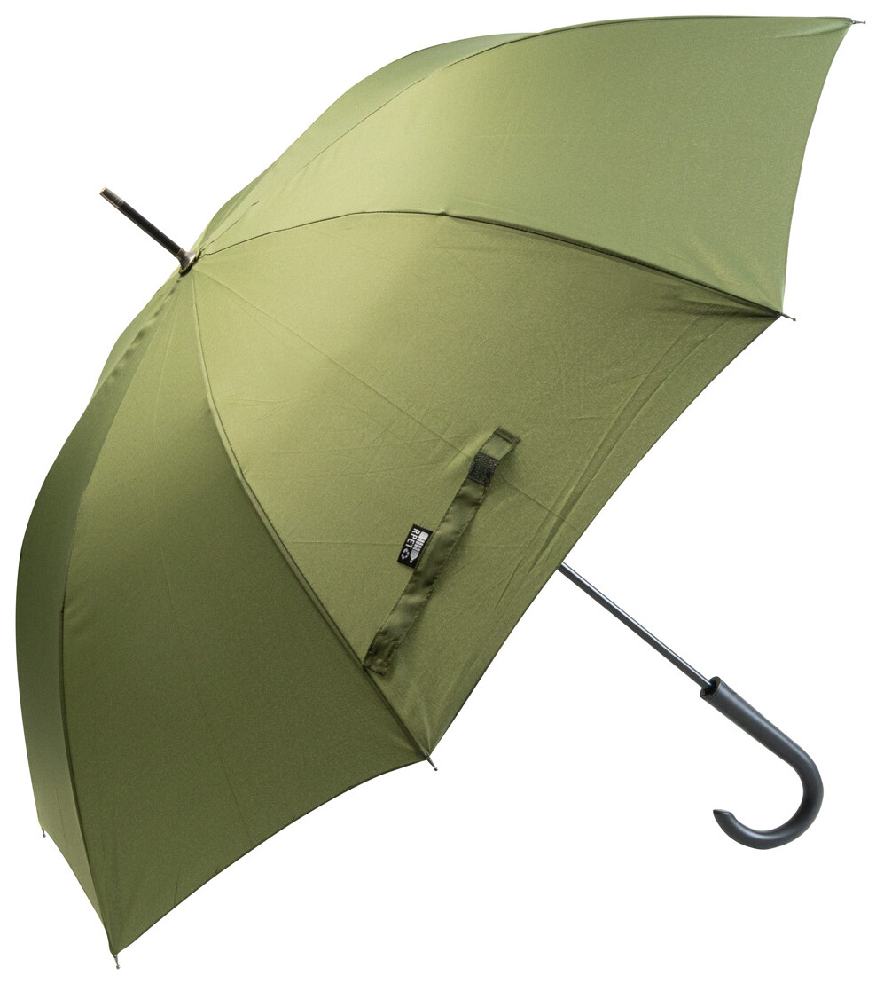 Automatický větruodolný deštník s 8 panely, sklolaminátovým rámem, kovovou tyčí a zakřivenou ABS rukojetí. Pongee 190T RPET. S výrazným štítkem RPET.
