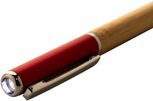 Kuličkové pero z bambusu a recyklovaného ABS plastu s 1 LED svítilnou. S modrou náplní a knoflíkovou baterií.