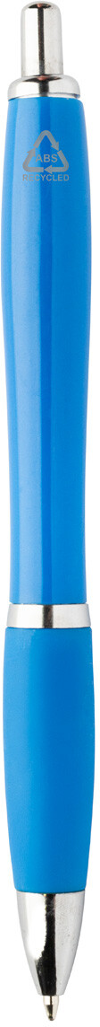 Kuličkové pero z recyklovaného ABS plastu s úchopem v odpovídající barvě a chromovanými částmi. S modrou náplní.
