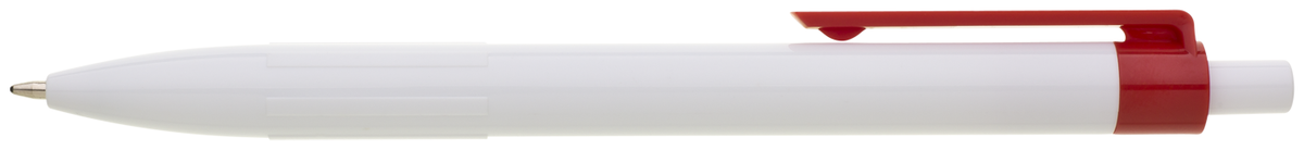 Plastové, kuličkové pero BIARE má bílé tělo, profilovaný úchop a červený klip. Náplň X-20 (120mm), modře píšící.
