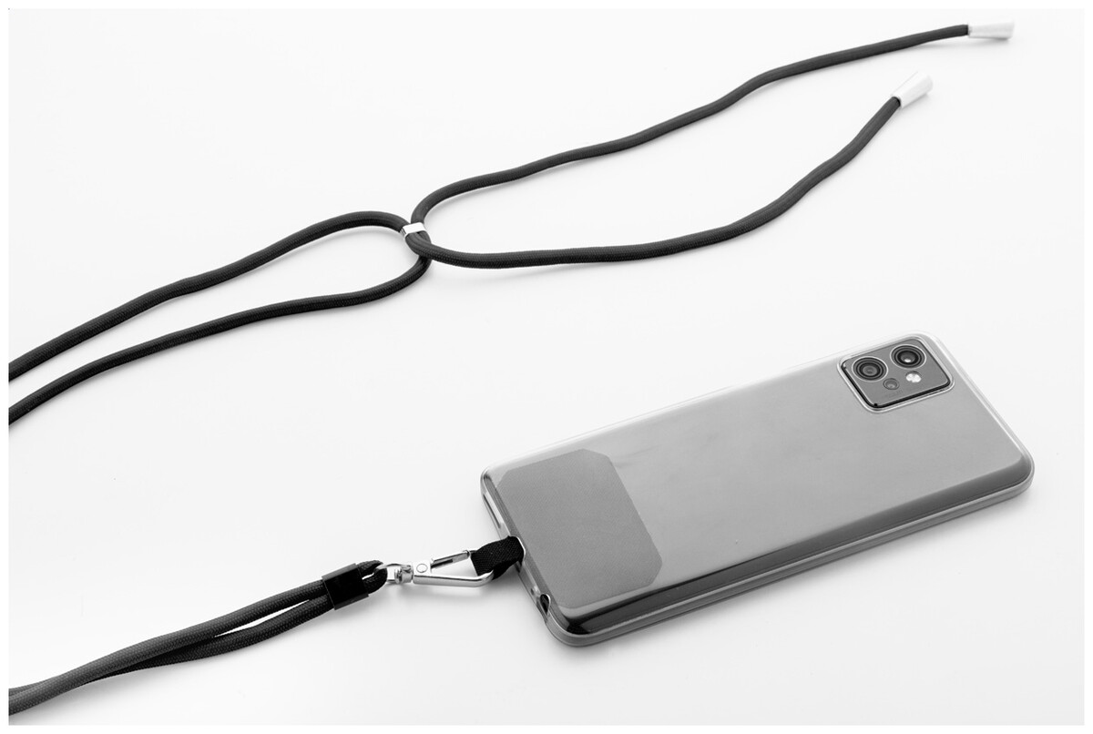 RPET lanyard s nastavitelnou délkou pro držák na mobil s kovovou karabinou a vložkou na telefon.