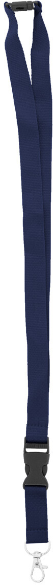 Polyesterový lanyard RPET s odnímatelnou kovovou karabinou a bezpečnostní přezkou.