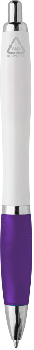 Kuličkové pero z recyklovaného ABS plastu s bílým tělem, barevným úchopem a chromovanými částmi. S modrou náplní.