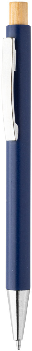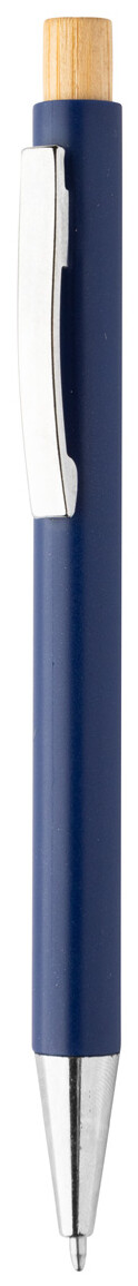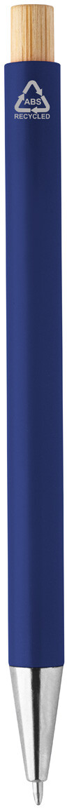 Kuličkové pero z recyklovaného ABS plastu s bambusovým tlačítkem a kovovým klipem. S modrou náplní.