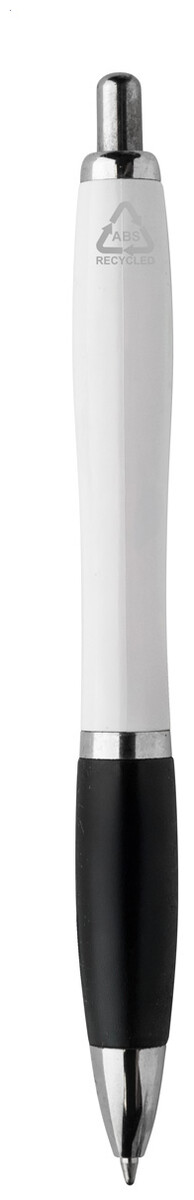 Kuličkové pero z recyklovaného ABS plastu s bílým tělem, barevným úchopem a chromovanými částmi. S modrou náplní.