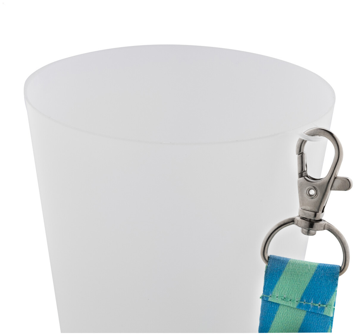 Opakovaně použitelný kelímek s háčkem na šňůrku z matného PP plastu, 500 ml. Čistá kapacita: 450 ml.