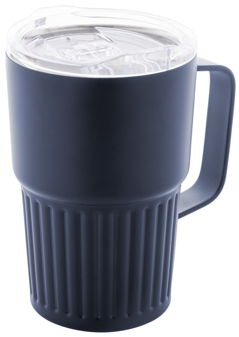 Dvoustěnný termo hrnek z recyklované nerezové oceli s víčkem na pití z ABS plastu. 470 ml.